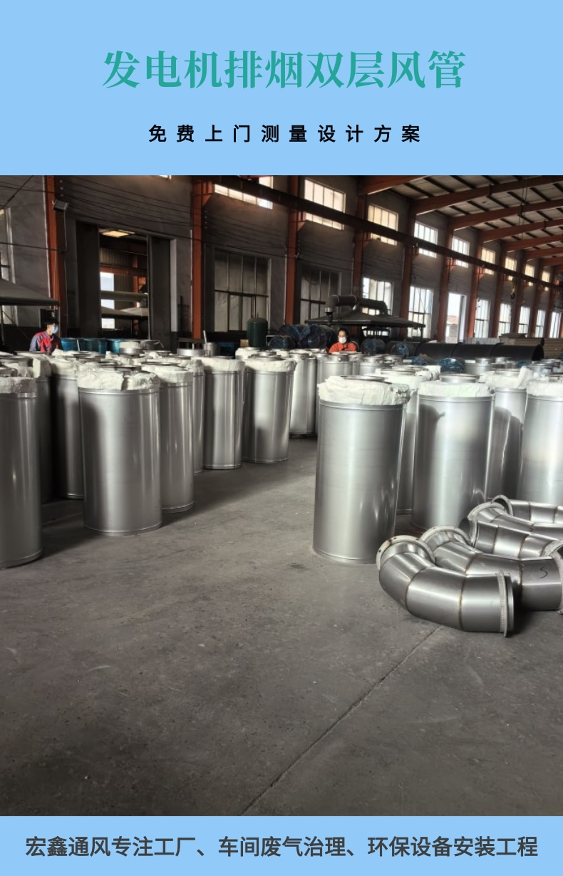 鸿盛通风设备供应不锈钢双层排烟风管 发电机不锈钢排烟囱管道安装