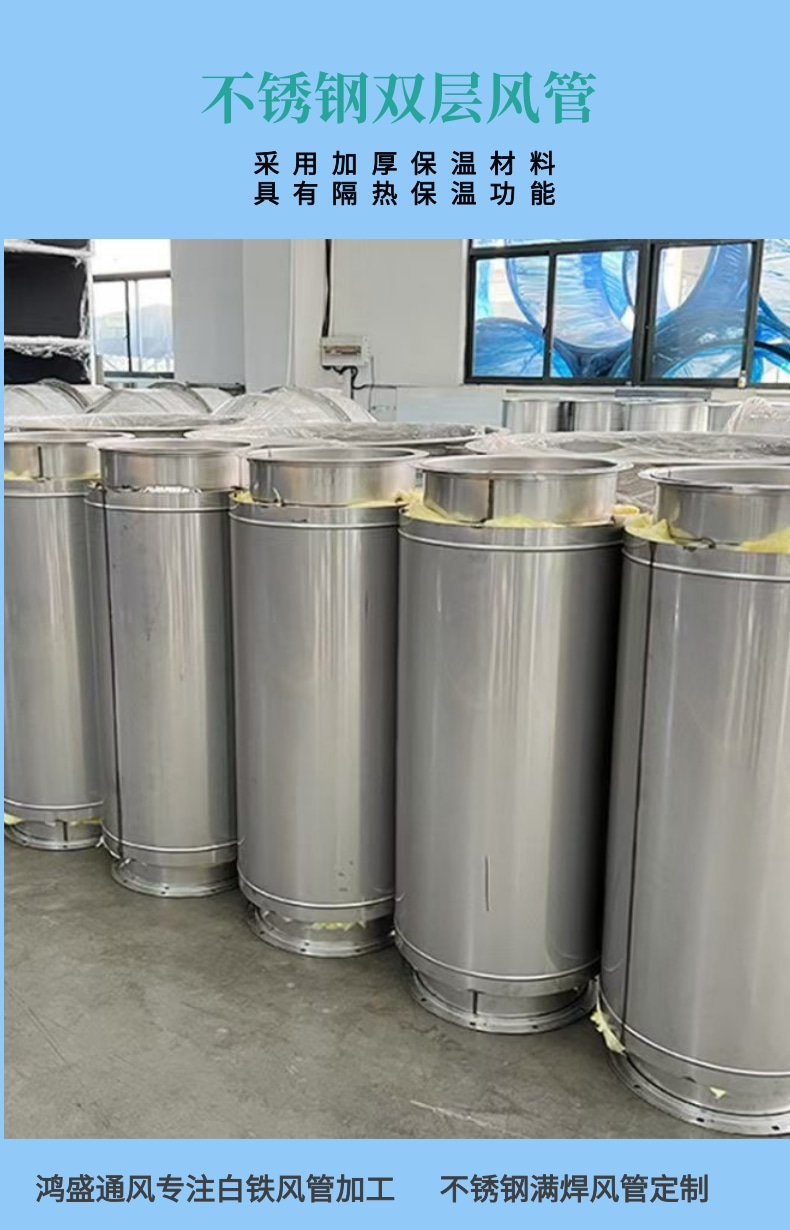 不锈钢双层风管加工 发电机组不锈钢烟囱安装 双层保温不锈钢烟管安装